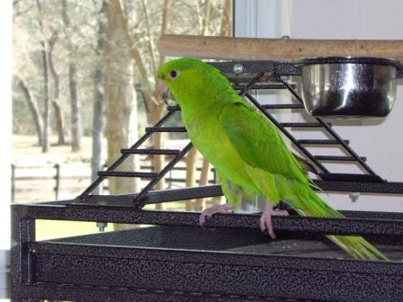 Romeo, a green conure rescued from a neglectful situation in 2000.