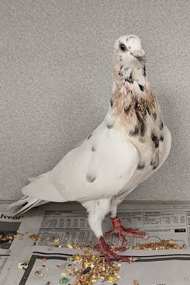 Grizzle is a racing pigeon who failed to find his way home after a race. When we tracked down his owner, we were told to "just keep him because he failed at racing."